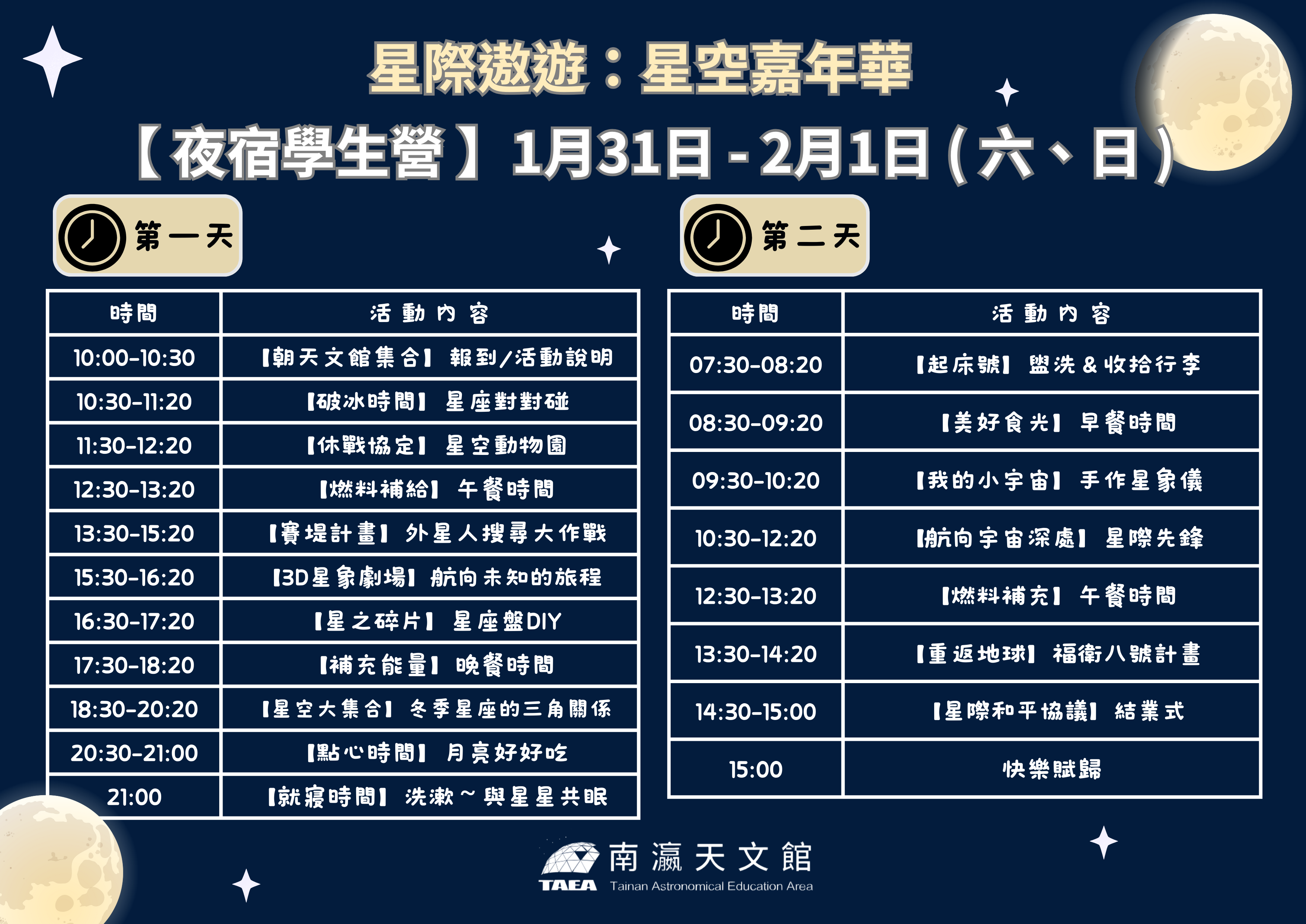 1/31(六)-2/1(日) 【夜宿學生營】星際遨遊:星空嘉年華