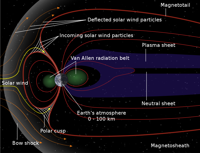 (地球磁場的結構,取自https://en.wikipedia.org/wiki/Magnetosphere)