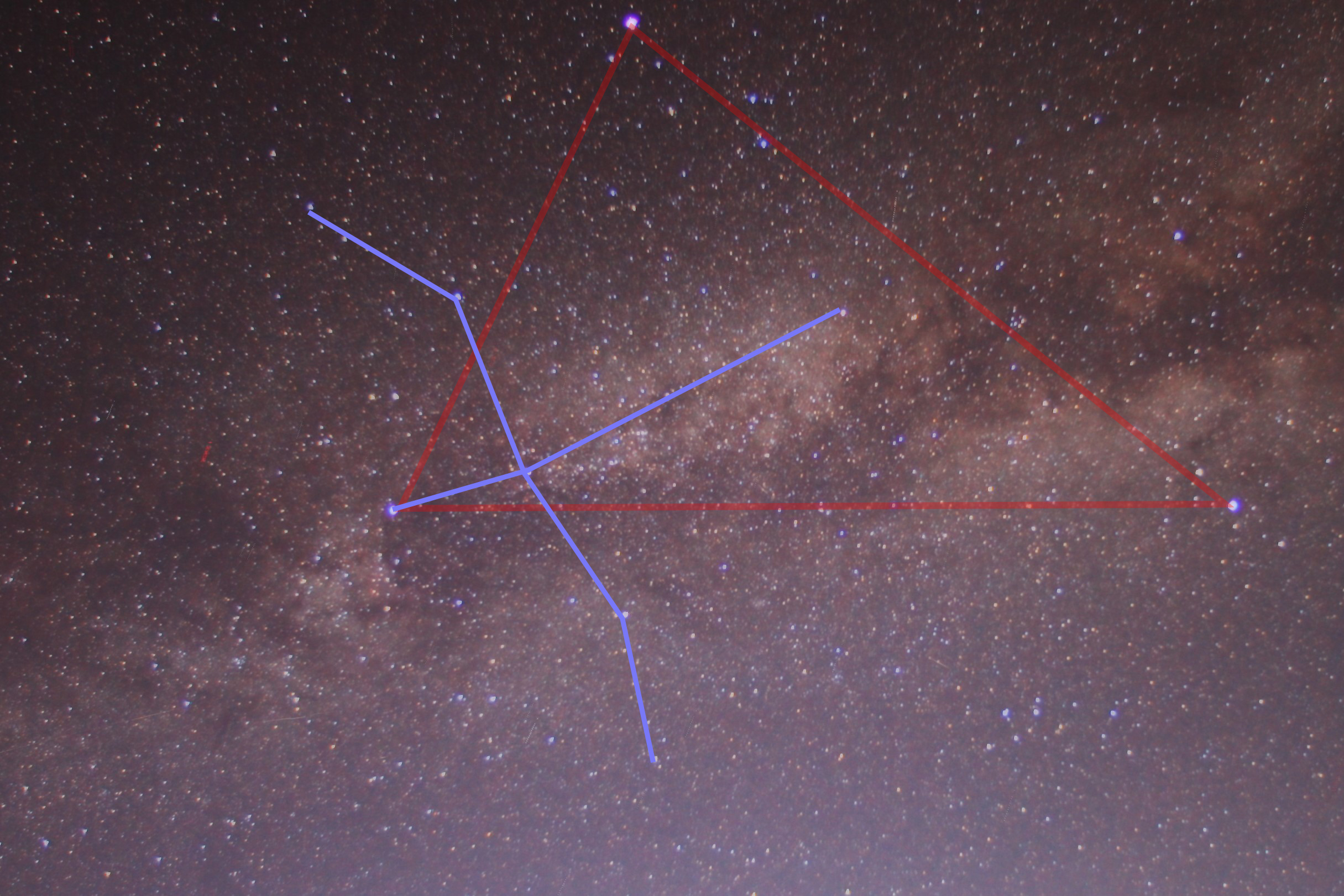 圖二、天鵝座及夏季大三角(20200322攝於松雪樓)