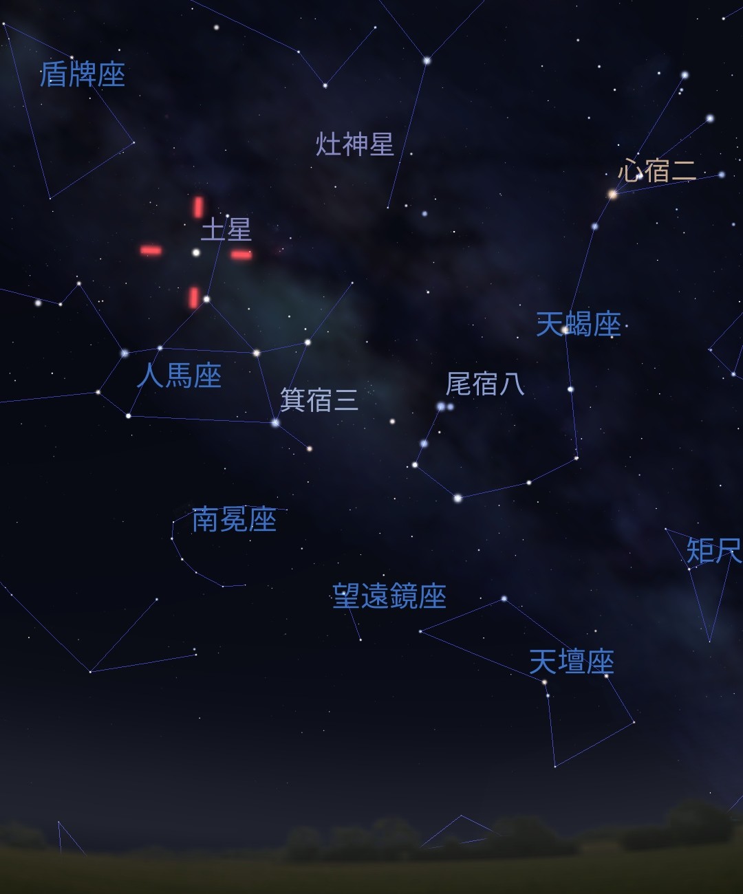 今年暑假期間剛好是土星登場的時間,每天19:30過後當天色暗下來,它會閃耀出現在南邊天空「人馬座」的頭頂位置,隨著時間遞移,它的仰角還會更高、更容易觀測;當你在南邊天空看見一支茶壺的造型,茶壺蓋上頭那顆明亮的星星就是它了!如果你在光害較低的高山進行觀測,你還會發現它就悠哉地飄浮在銀河當中喔!