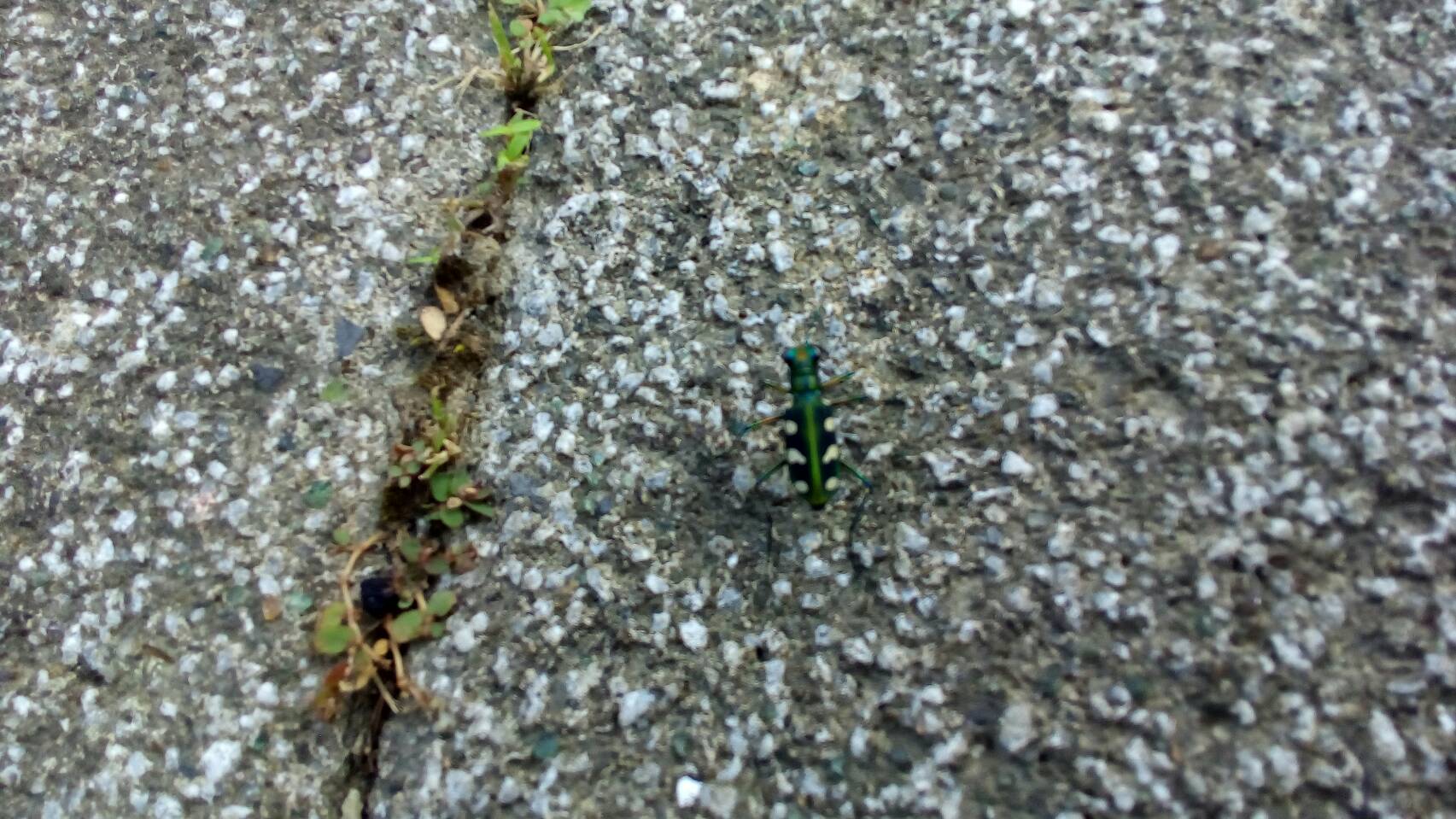 這位台灣特有種的殺手,根據文獻記載,成蟲出現於5到9月。但是天文館這邊大多在9月我們才容易見到其身影。大多出現在滯洪池旁邊的道路,數量上還不少,環山步道的首段,也有它們的身影。或許下回你到天文館來散步,也可以試試八星虎甲蟲帶路的功夫。