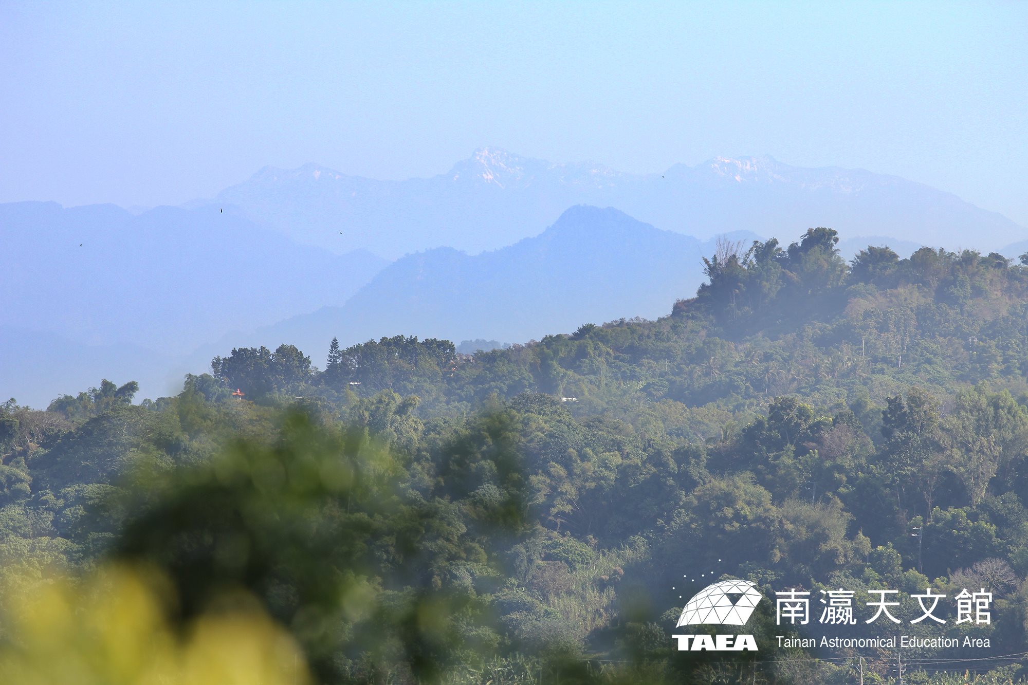 位於台南大內的南瀛天文館,雖然四周均為惡地形所包覆,但正好位在一座小山頭,只要有高氣壓南下,或是剛下過雨的清晨,我們很輕易地可以遠眺遠方的玉山山脈和中央山脈南段。從玉山北北峰、北峰、主峰、雲峰、庫哈諾辛山、大關山、小關山、溪南山、石山、卑南主峰到北大武山等,輔以豐富的鳥類生態,只要站在賽堤廣場或是天文觀測館二樓平台,就可以感受到王羲之的蘭亭集序—遊目騁懷、極視聽之娛的美景。