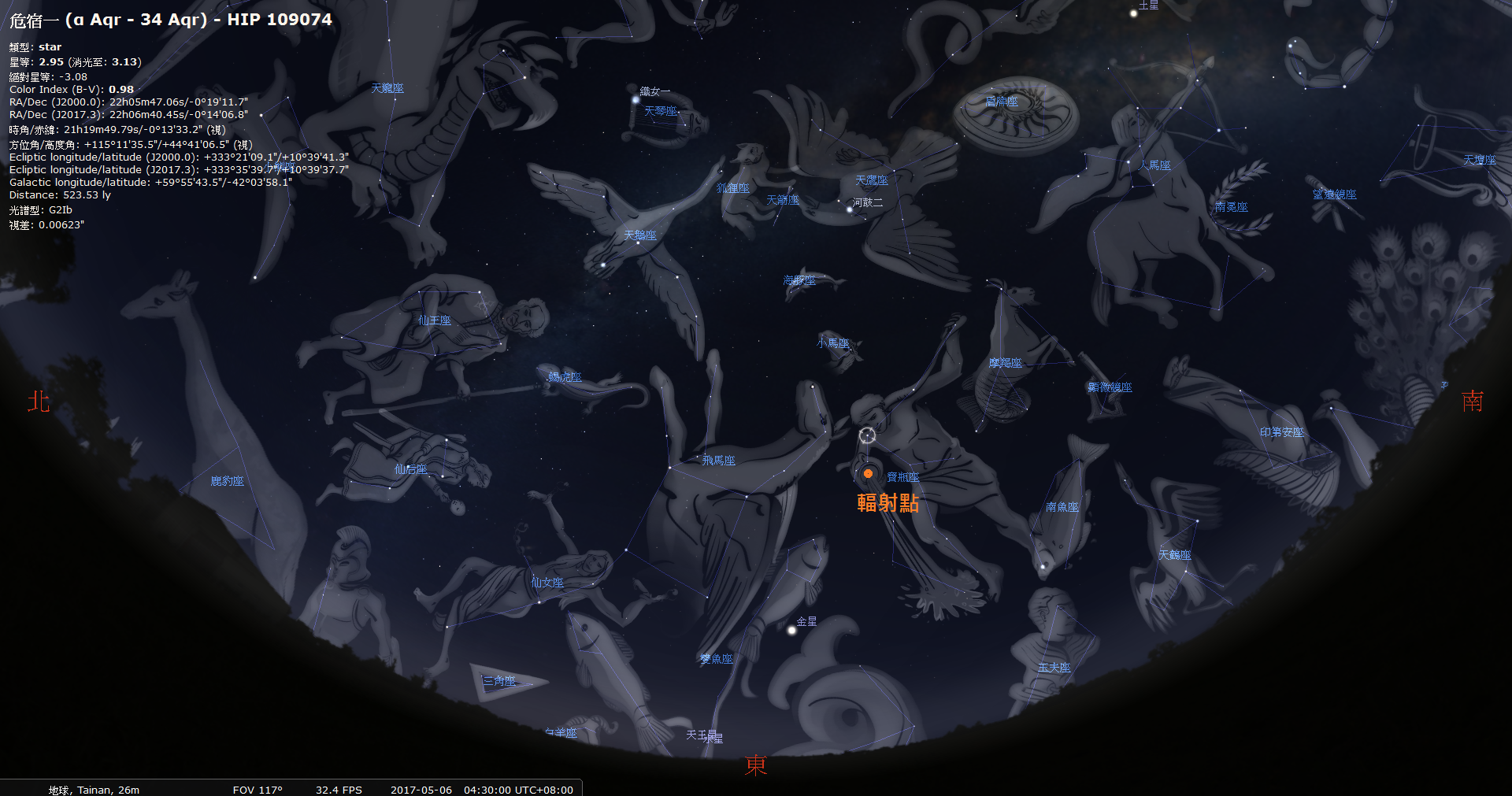 想看流星的民眾又可以期待啦,寶瓶座η流星雨將在2017/5/6凌晨達到高峰,極大期的ZHR值約50,也就是在極大期的時候,理想狀態的流星數量大約每小時50顆左右,是每年最可看的流星雨之一。
