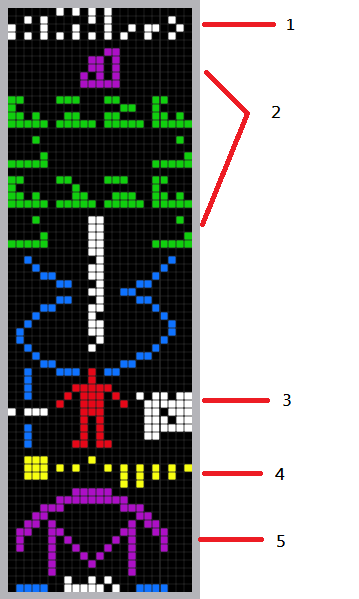 圖一、阿雷西博訊息,顏色是為了方便分類,訊息本身沒有顏色(SETI)