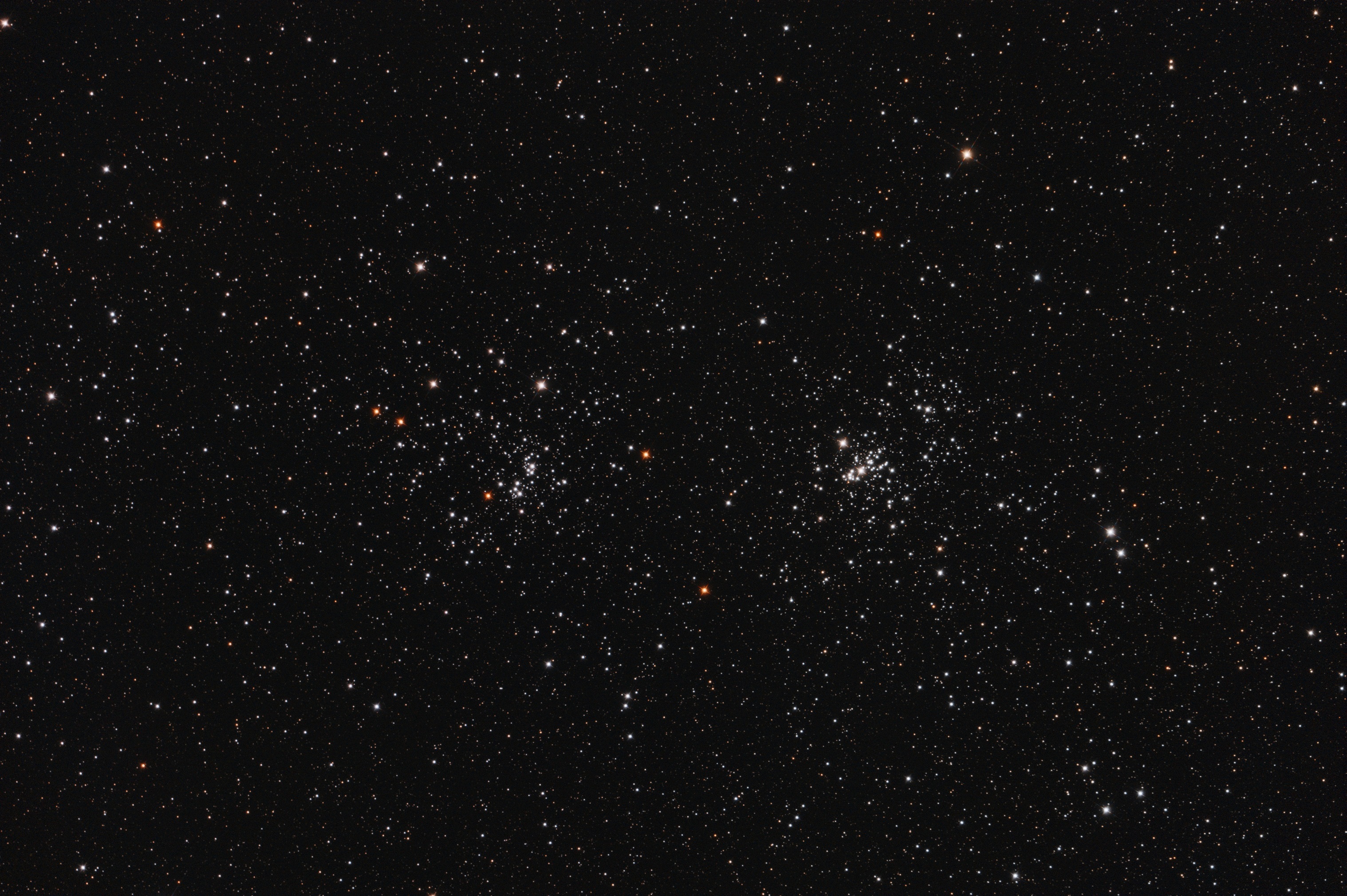 位於英仙座的兩個疏散星團,彼此之間靠得相當近而成為經常觀看的目標,天氣狀況好的時候可以用肉眼隱約看見,透過望遠鏡觀看,恆星稀稀疏疏的有時候倍率太高反而不好與背景的恆星區別(銀河中間太多星星啦)。