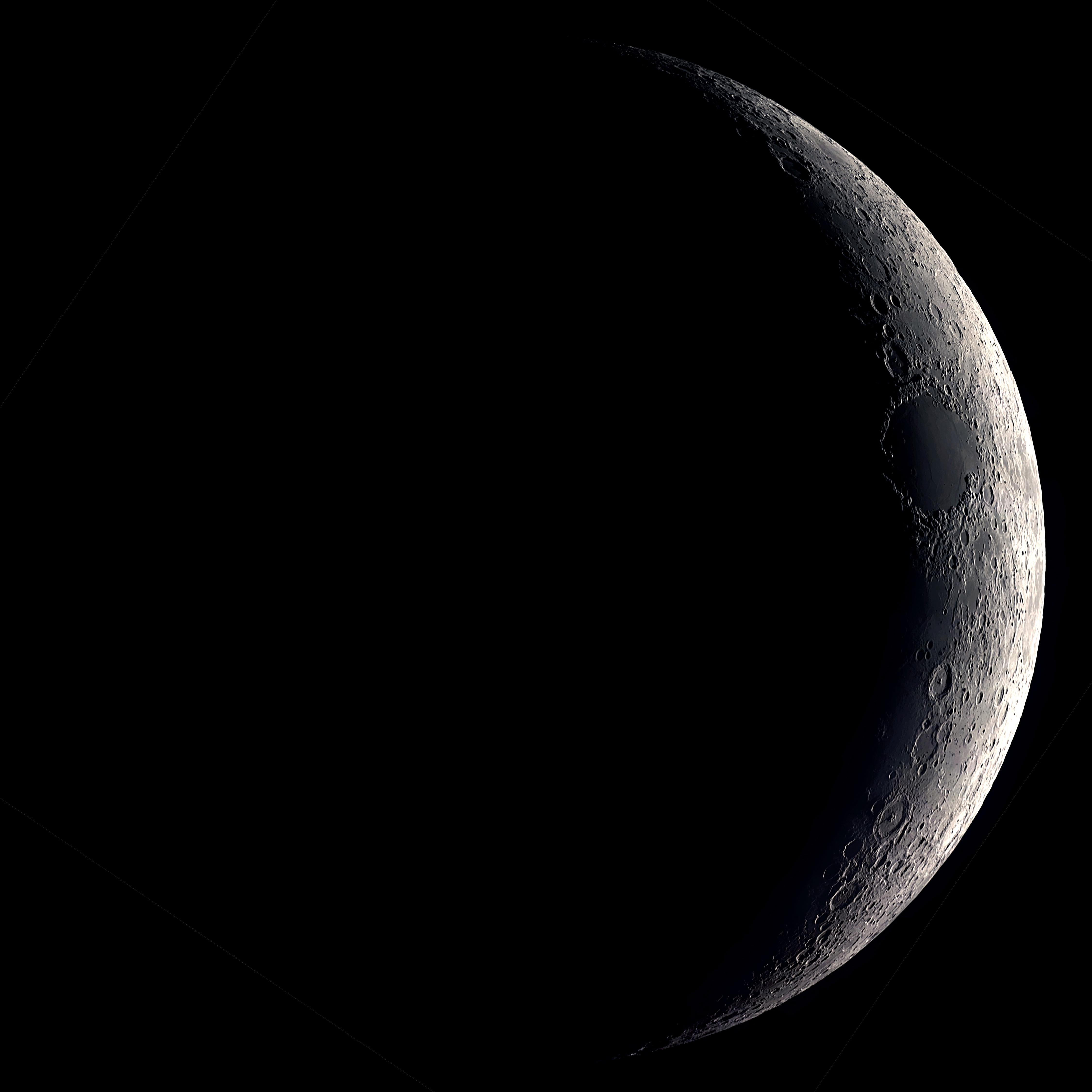 農曆初四的眉月,趁著太陽下山後月球還沒西沉的短暫時間拍攝(其實拍到後面望遠鏡有一半已經被觀測室屋頂擋住),彎彎的月亮比起圓圓的滿月,在明暗交接處能看到更多隕石坑的陰影,立體感十足!