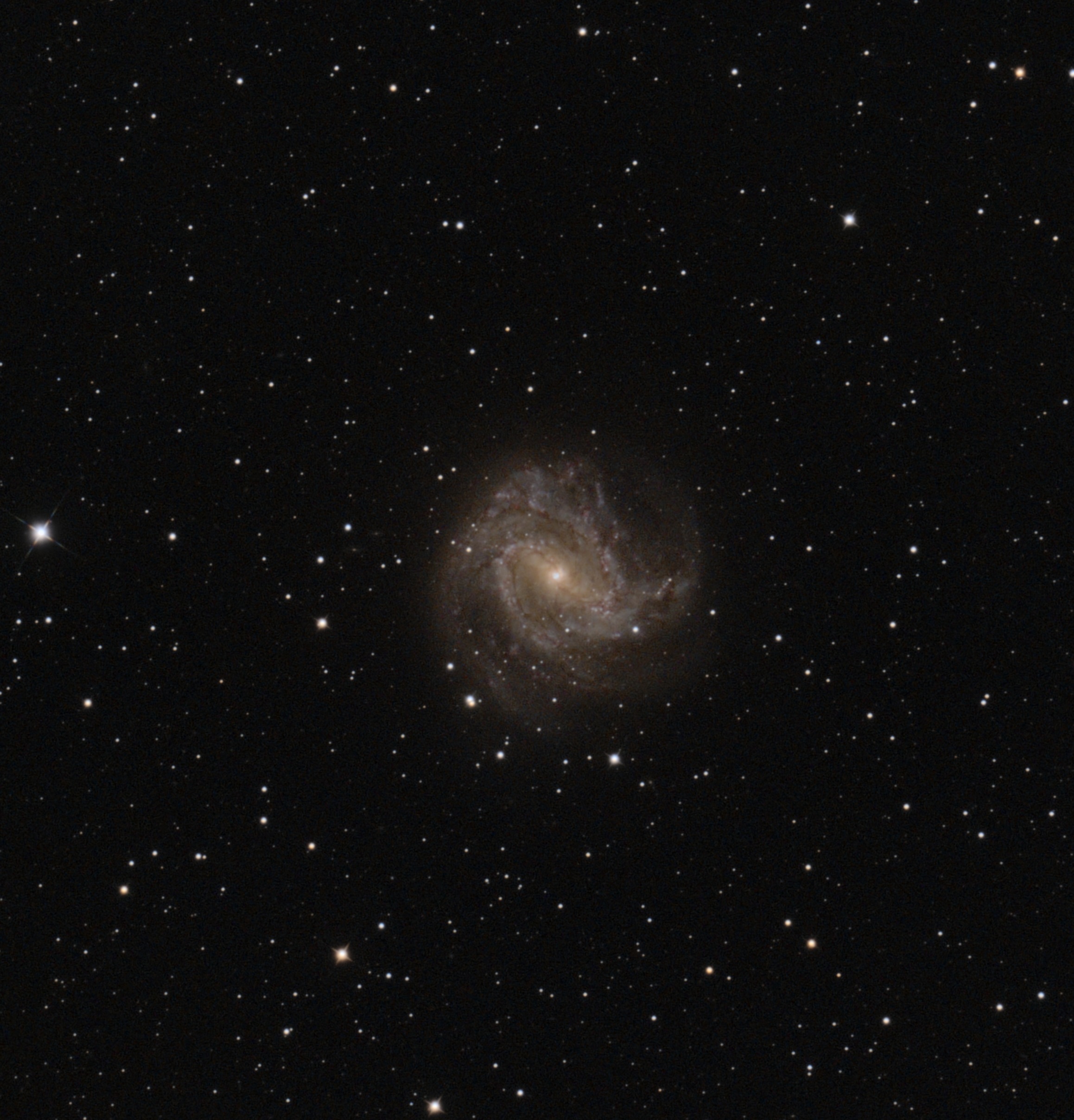 同樣是正面面向我們,同樣有明顯的旋臂構造,不過M83在星系分類上屬於棒旋星系,可以看到在星系的中間有類似短棒的構造。