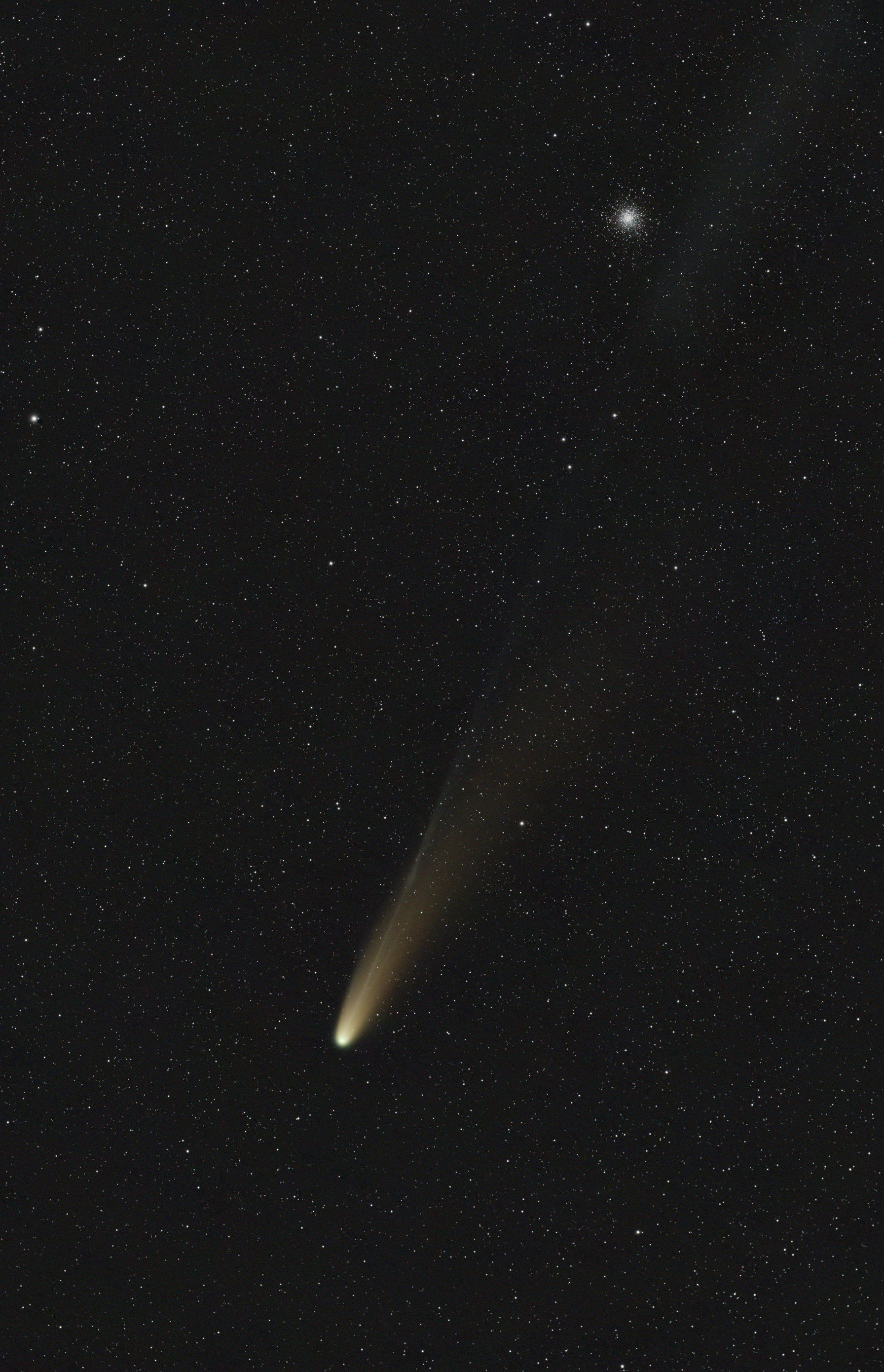 影像中除了彗星本體可看到黃白色塵埃尾、藍色離子尾、綠色彗髮以外,剛好還路過一個球狀星團M10附近,給畫面帶來更多的趣味~但是影像處理就很痛苦!
