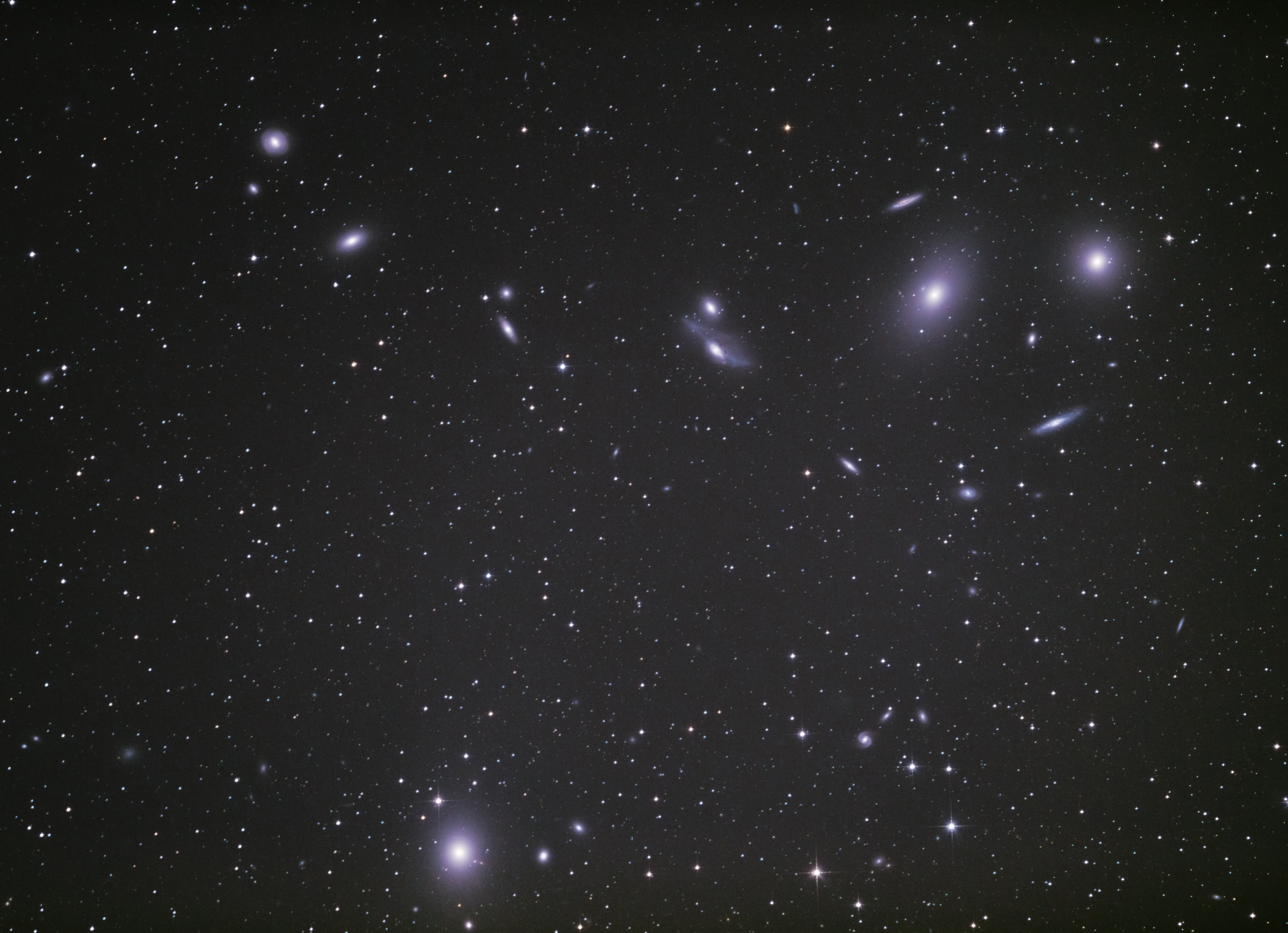 超巨大的室女座星系團的一部份,眾多的星系聚集在此天區,沿著一個長條排列,位於畫面右上兩個最亮的橢圓星系為M84、M86,其他還包含NGC4458、NGC4461、NGC4435、NGC4438、NGC4425、NGC4402、NGC4413、NGC4387、NGC4388等星系(只列出較亮的,太多星系了數不完...),畫面下方的橢圓星系是M87,事件視界望遠鏡(EHT)在2019年公布的黑洞影像就是位於此星系的核心位置。