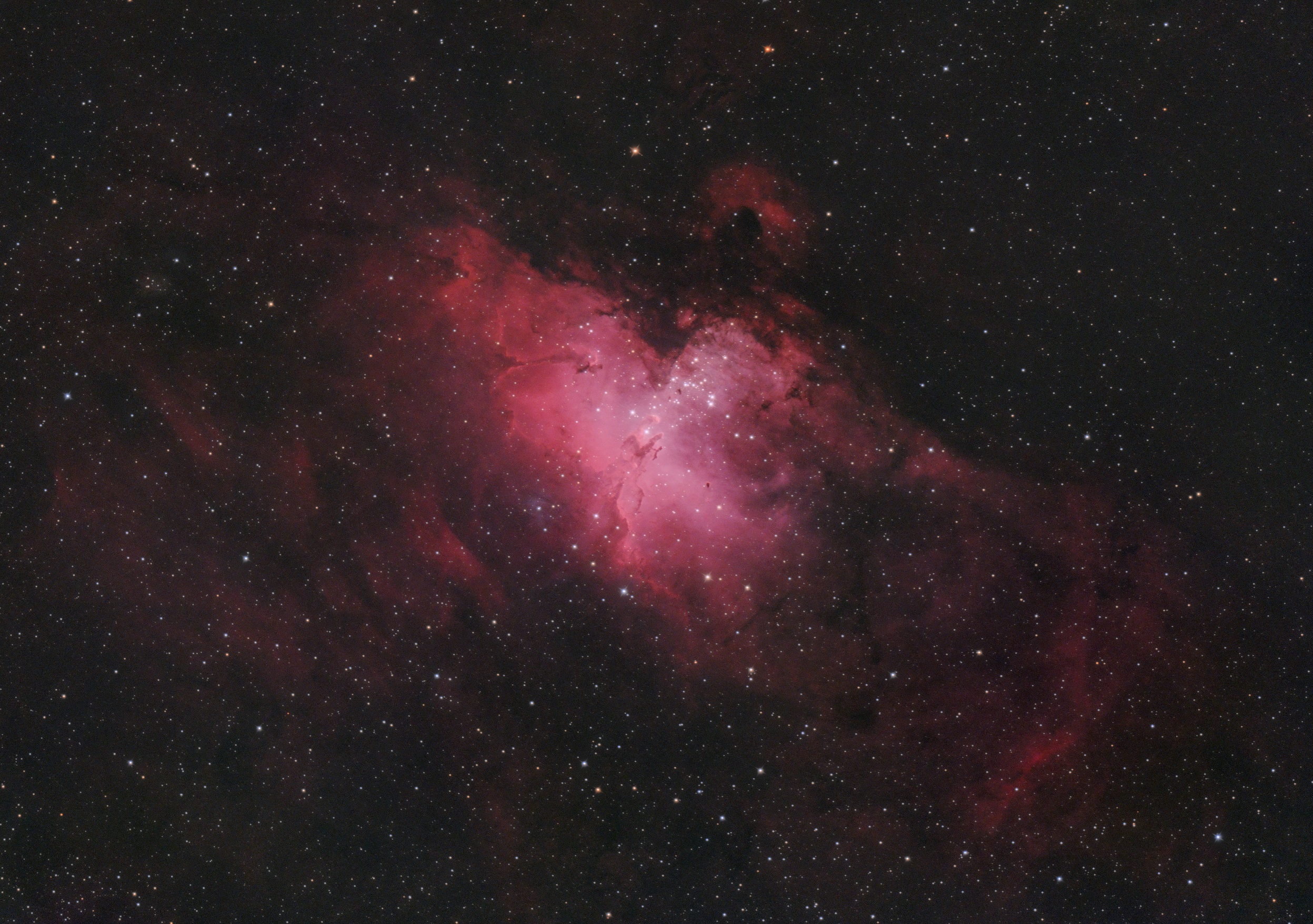 在夏夜的銀河中心,有許多值得觀測的目標,而老鷹星雲就像一支展翅翱翔的老鷹,位於巨蛇座的尾部、人馬座「茶壺」形狀的壺蓋上方。