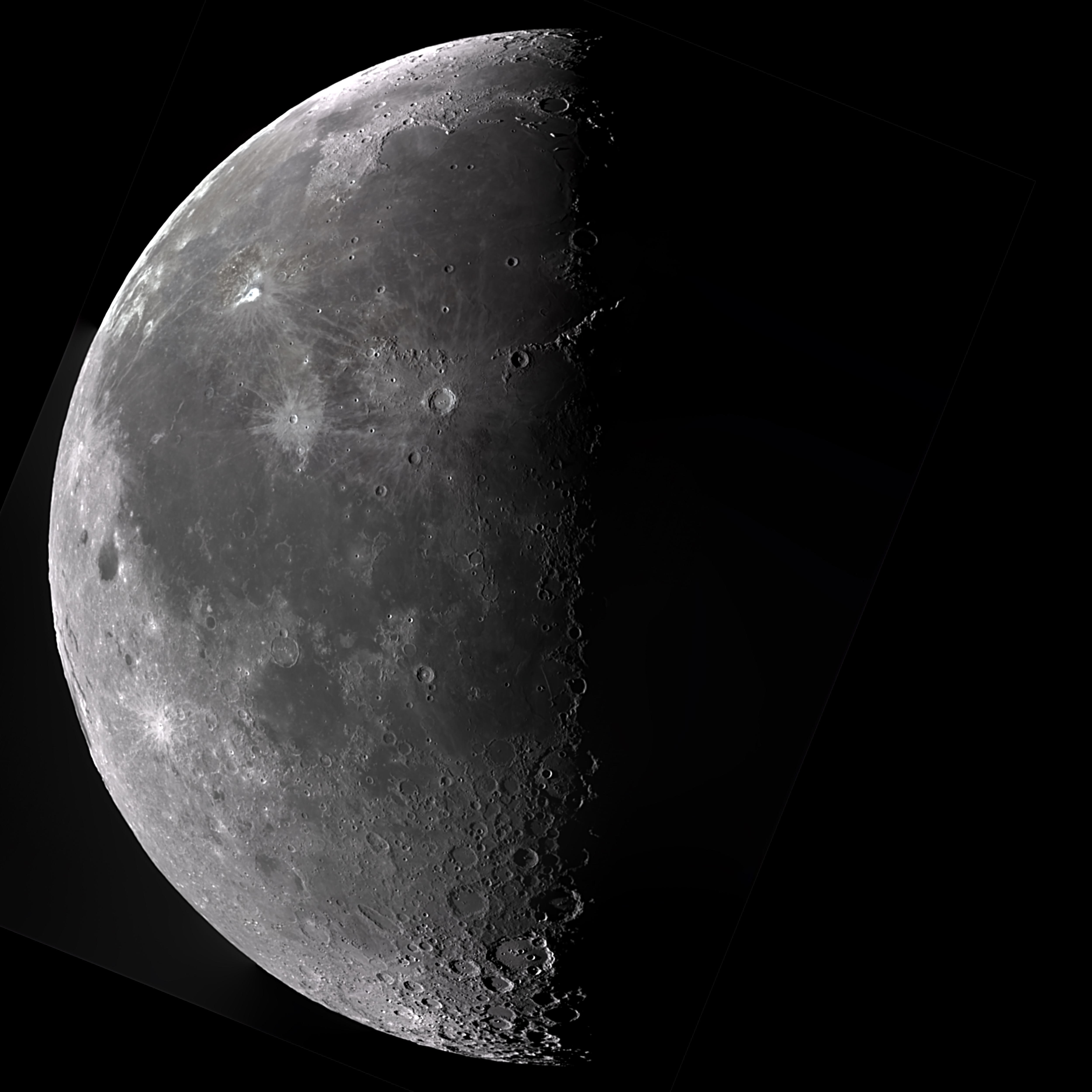 農曆二十三號的下弦月,深感之前使用Meade 14望遠鏡焦距太長的痛苦,改用BRC250拍攝,馬賽克拼接的時候不用拼那麼多。