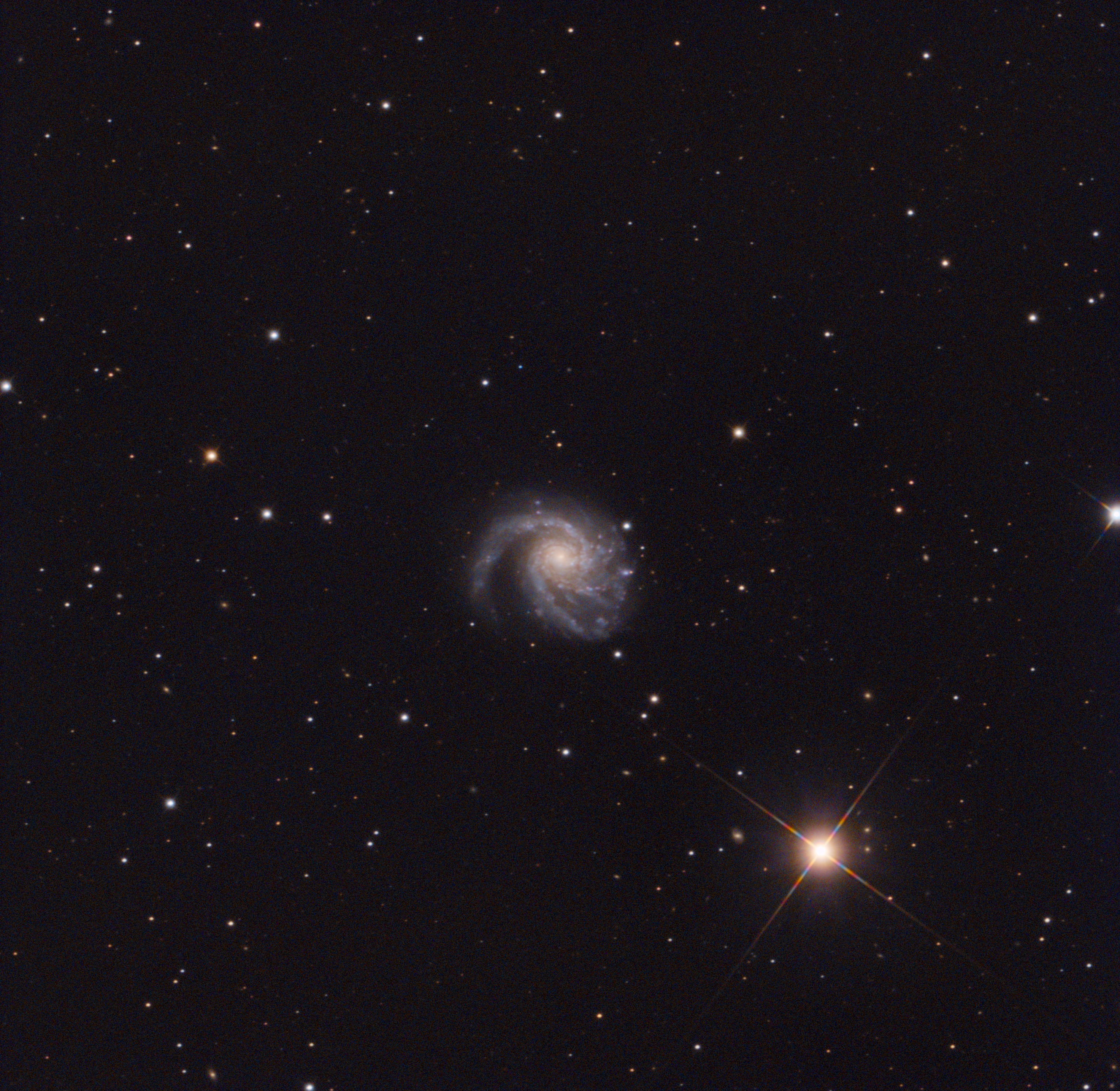 M99位在后髮座,是室女座星系團的成員之一,不同於通常的螺旋星系,M99的旋臂似乎有點不對稱,推測他可能過去曾與其他星系「擦撞」(NGC4262),於是產生這種歪一邊的旋臂。