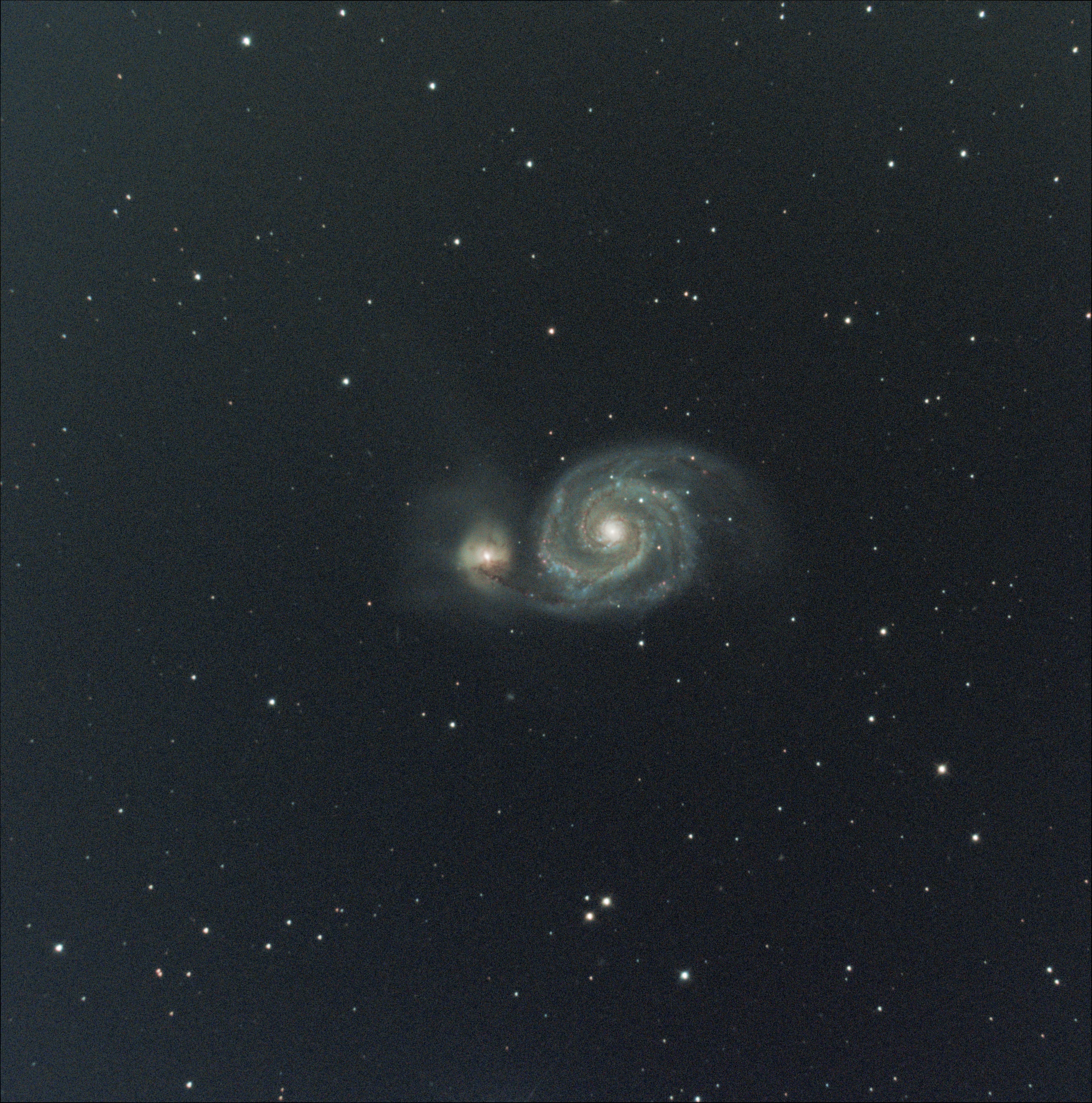 受到重力的作用,兩個星系在接近的過程互相拉扯,M51就是處於這樣緩慢拉扯變形的途中,最終將互相碰撞、合併。