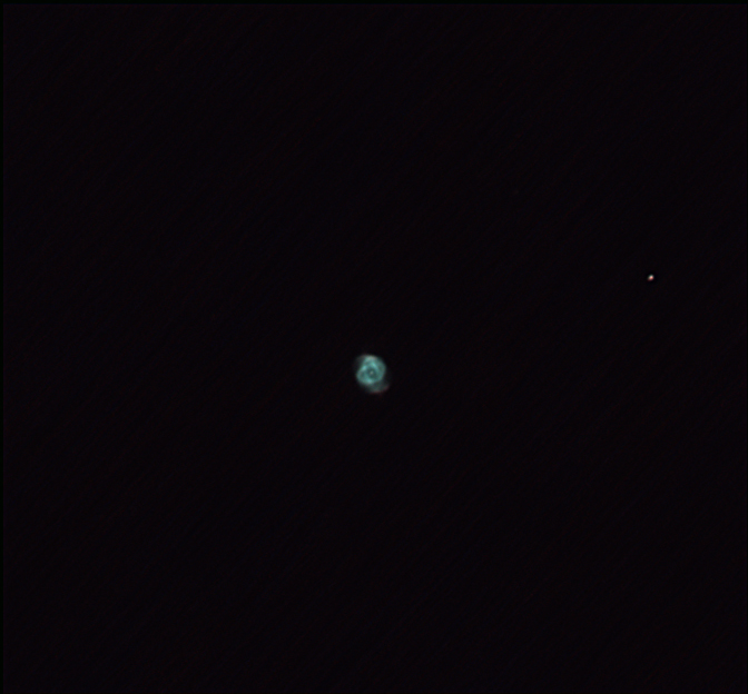 位在天龍座的著名行星狀星雲,由於中心非常明亮,此次拍攝採用行星攝影的模式,利用短曝光(數十毫秒以下),並取其中最清晰的影像進行疊合,這種幸運成像法可以突破大氣擾動的限制,讓解析度達到望遠鏡的光學極限。