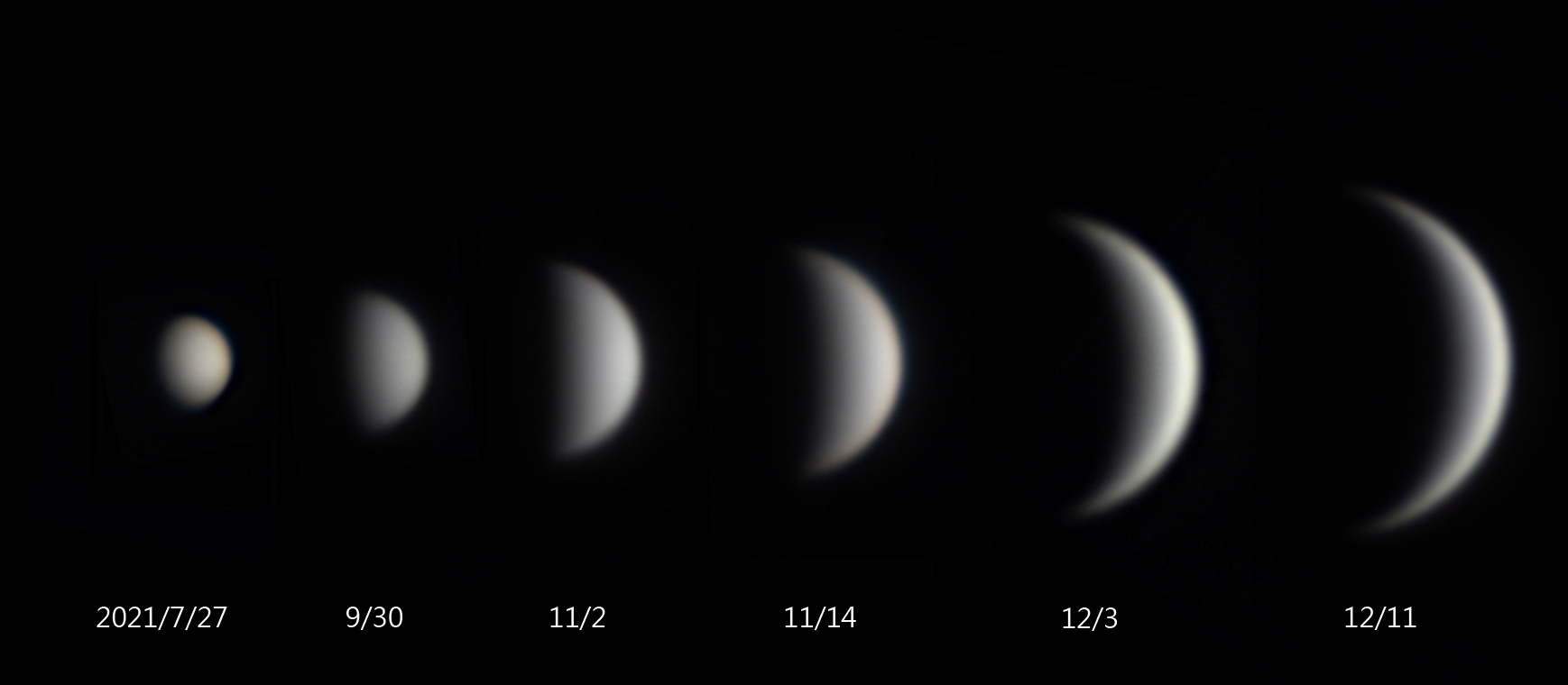 傍晚西邊最耀眼的金星,透過望遠鏡觀察可以看到如月球一樣的盈虧變化,持續追蹤了大約3個多月,從圓的看到彎的,從小顆看到大顆,十分有趣~
