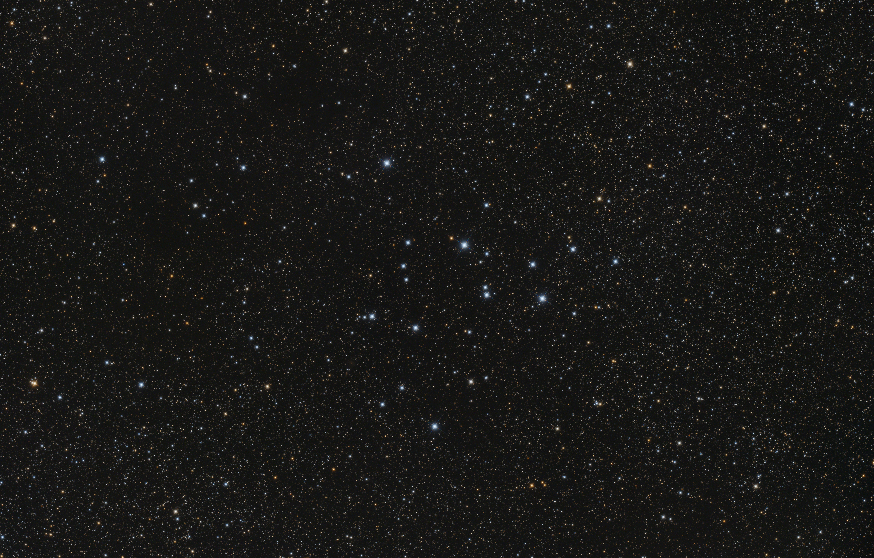 位於天鵝座尾部附近的疏散星團,成員數較少僅有20幾顆,散佈在背景銀河密集的星場之中,排列成類似金字塔的三角形狀。
